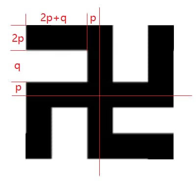 给定 $N$ 个万字纹,万字纹由中心坐标 $(x,y)$ 和样式 $(p,q)$ 的形式给出。万字纹为中心对称图形,可看作由第二象限中的图案绕中心 $(x,y)$ 分别旋转$90^\circ,180^\circ,270^\circ$拼得,如下图所示: